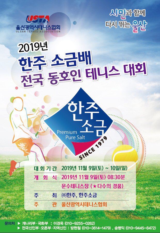 40년 전통의 한주소금에서 11월 9일~10일 양일간 울산에서 전국 동호인테니스대회를 개최합니다.